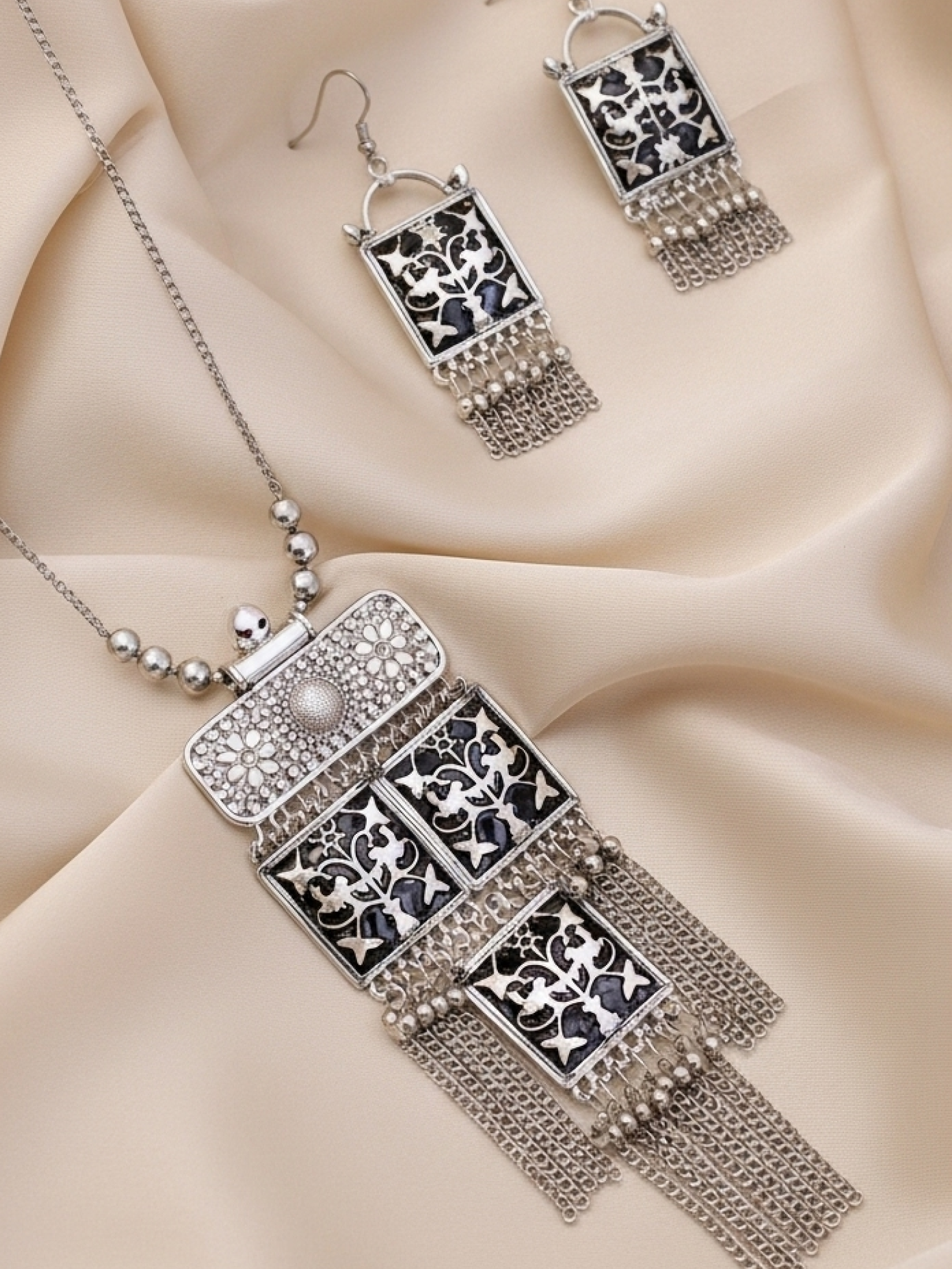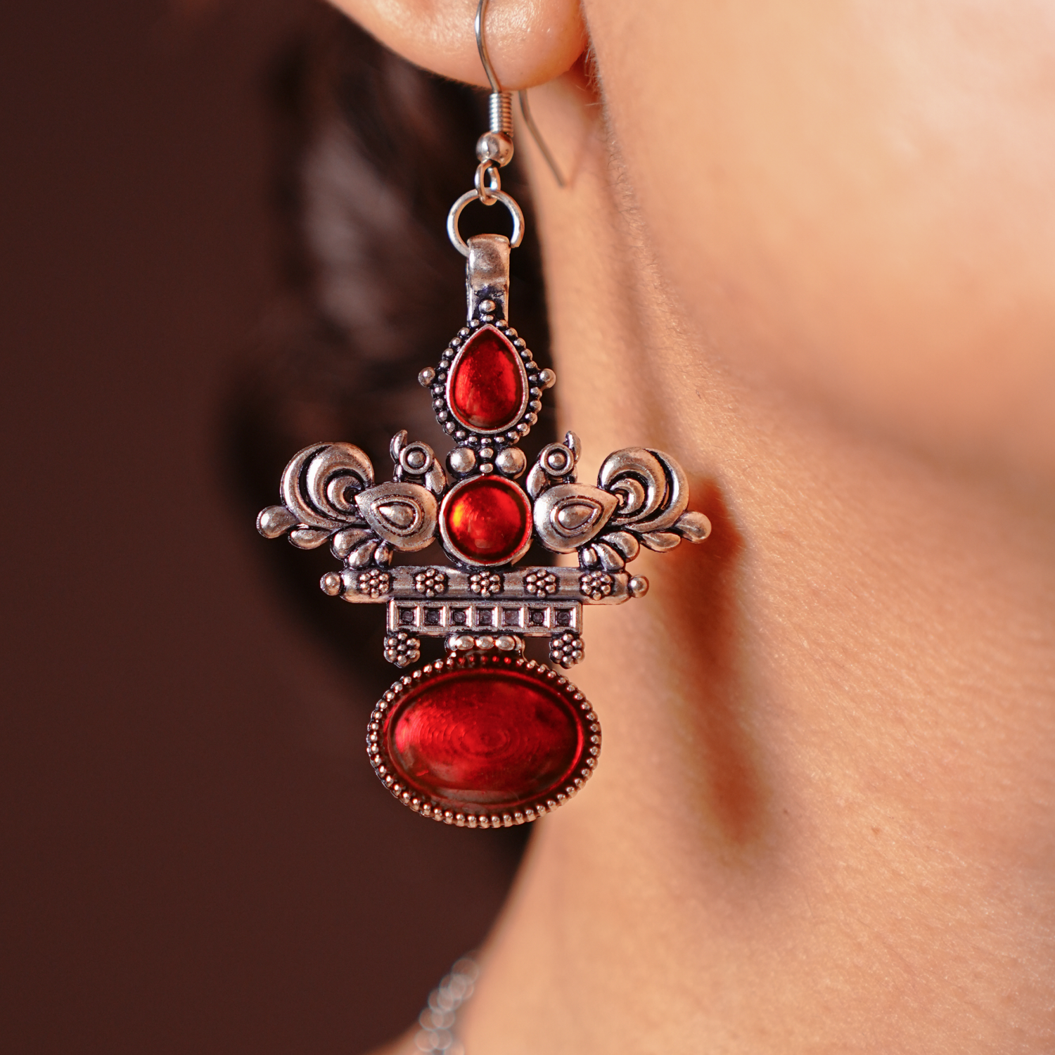 Oxidised German silver resists tarnish, lasting through seasons and celebrations.